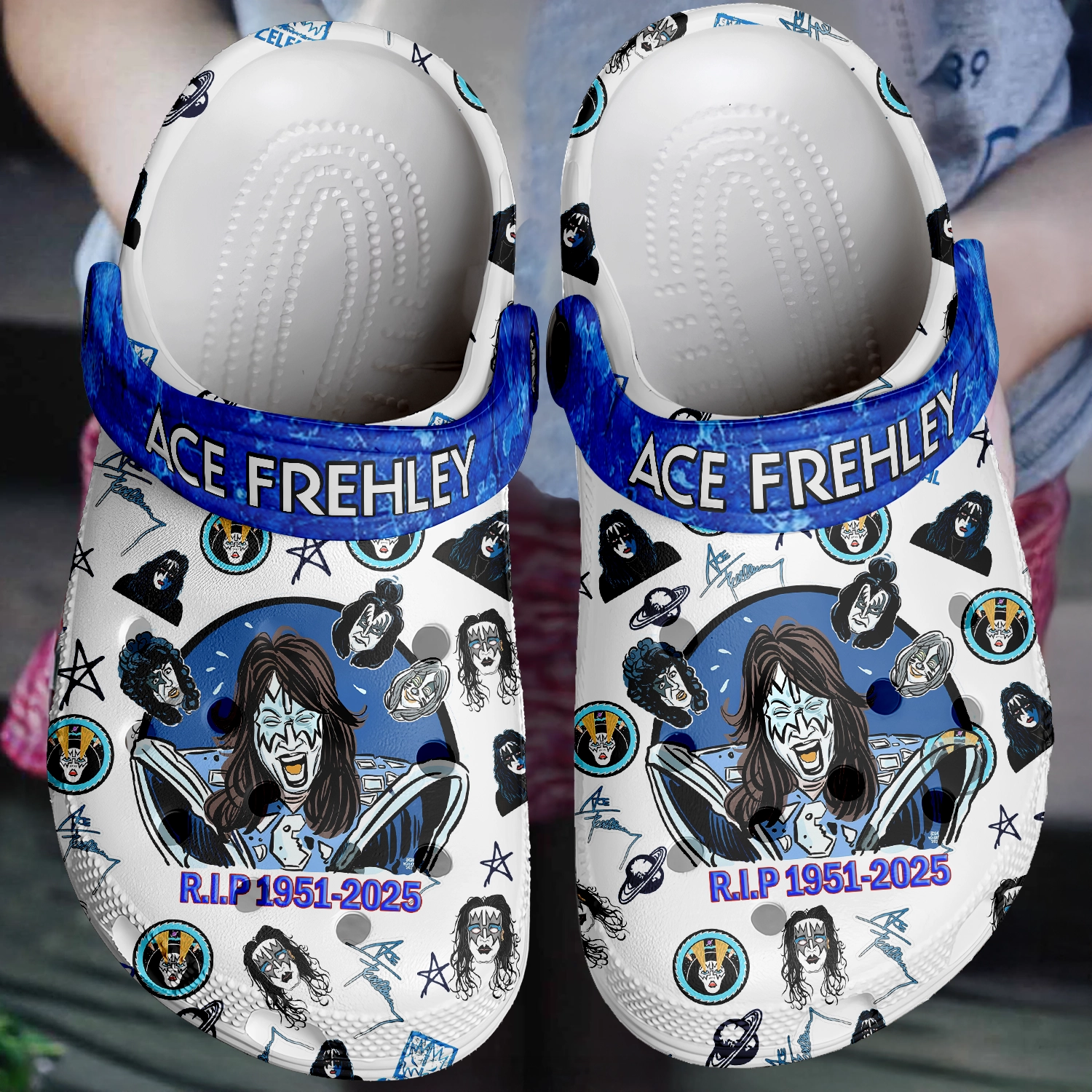 Gleammerch Ace Frehley x Kiss Band Crocs Crocband Clogs Shoes Comfortable For Men Women and Kids