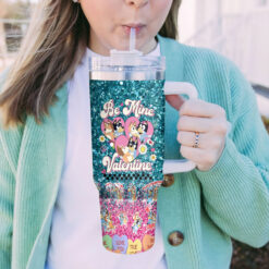 Gleammerch Bluey Custom Stanley Quencher 40oz Stainless Steel Tumbler With Handle