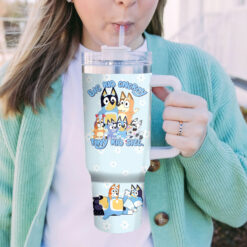 Gleammerch Bluey Custom Stanley Quencher 40oz Stainless Steel Tumbler With Handle