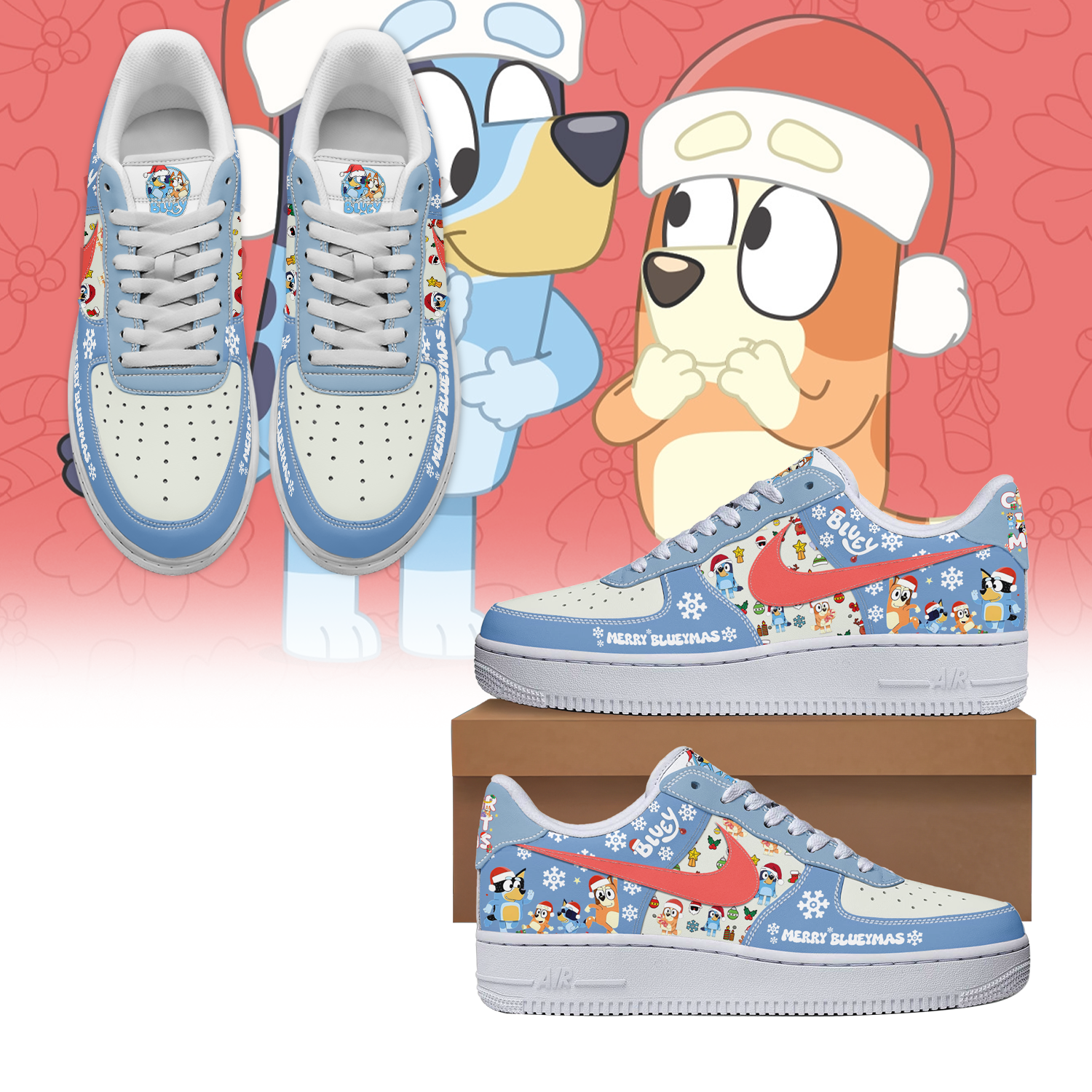 Gleammerch Bluey x Christmas Air Low-Top Sneakers Shoes For Men And Women