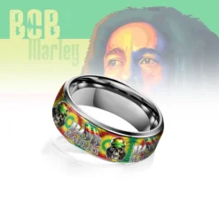 Gleammerch Bob Marley Silver Tungsten Rings Gift For Fans