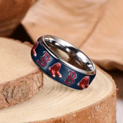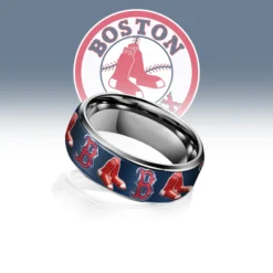 Gleammerch Boston Red Sox Silver Tungsten Rings Gift For Fans