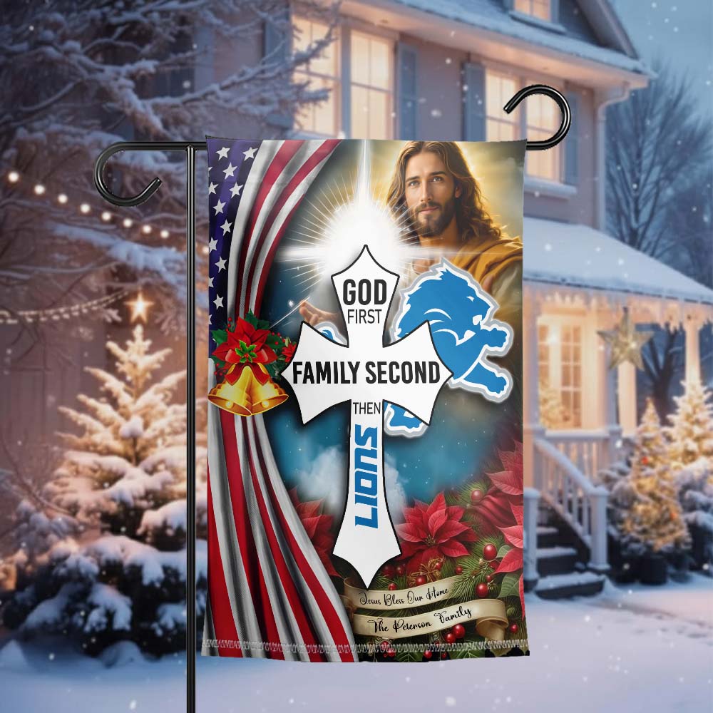 Gleammerch Detroit Lions Jesus Christ Garden Flag Gift For Fan