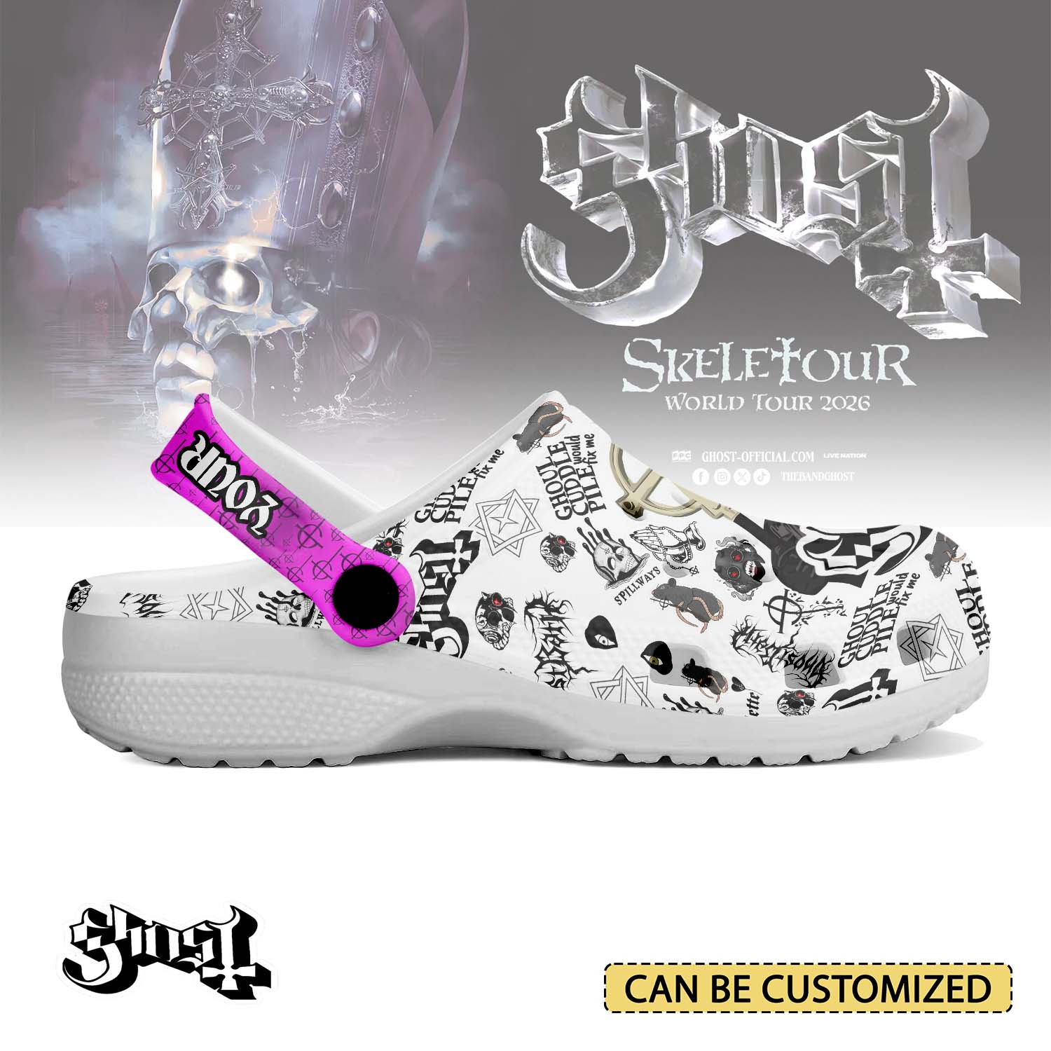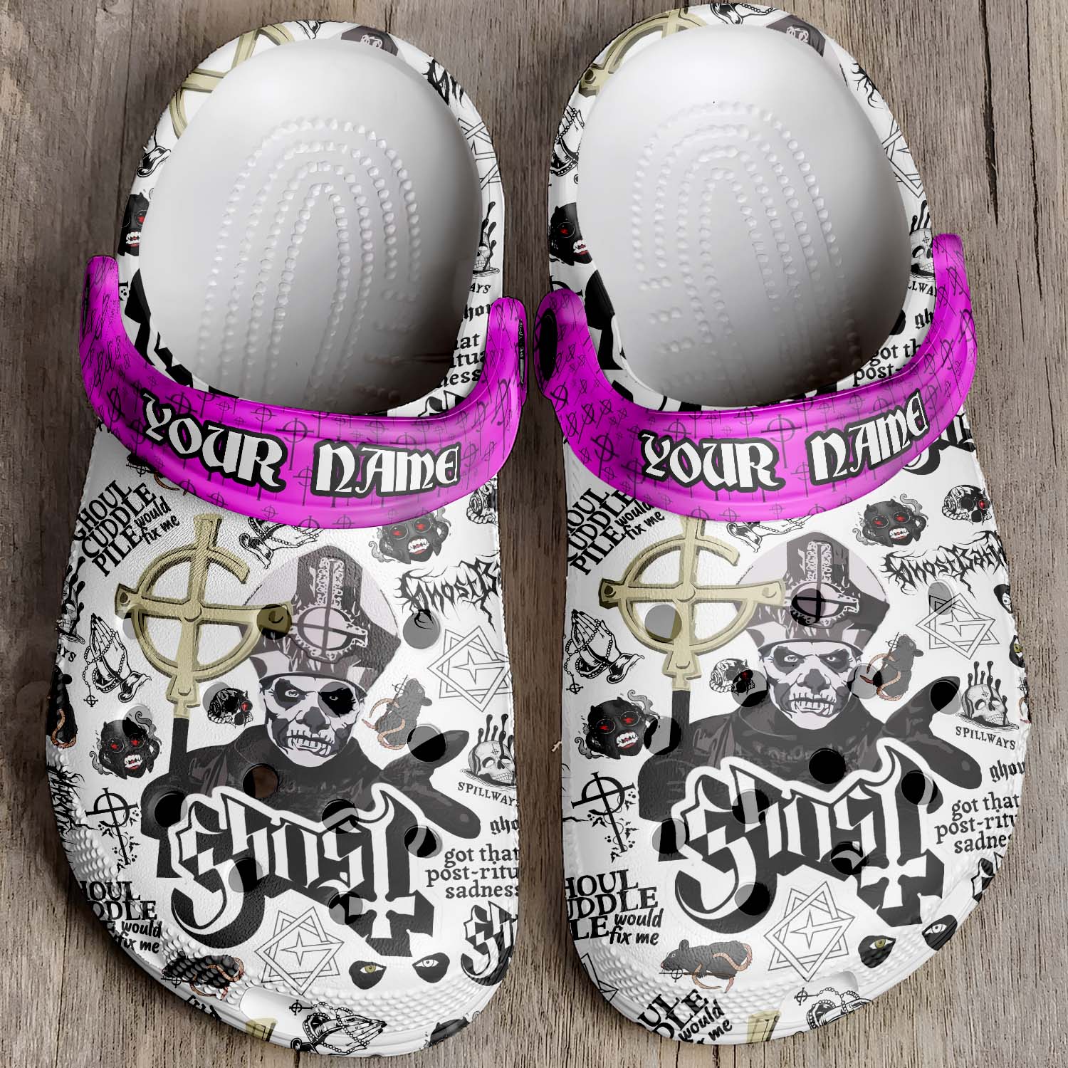 Gleammerch Ghost Band x Halloween Crocs Crocband Clogs Shoes Comfortable For Men Women and Kids $44.95
