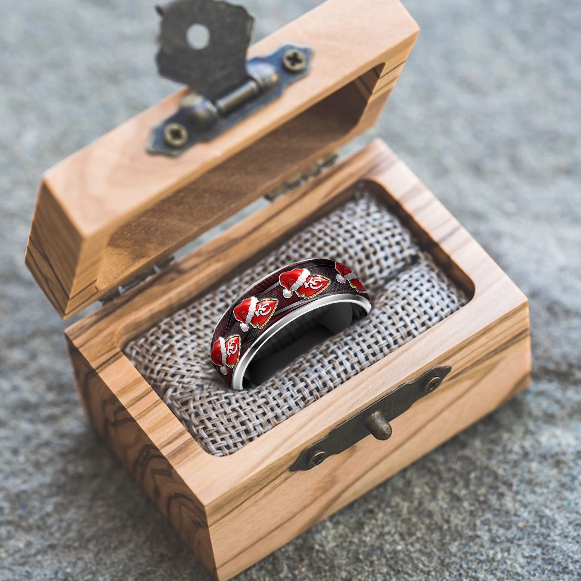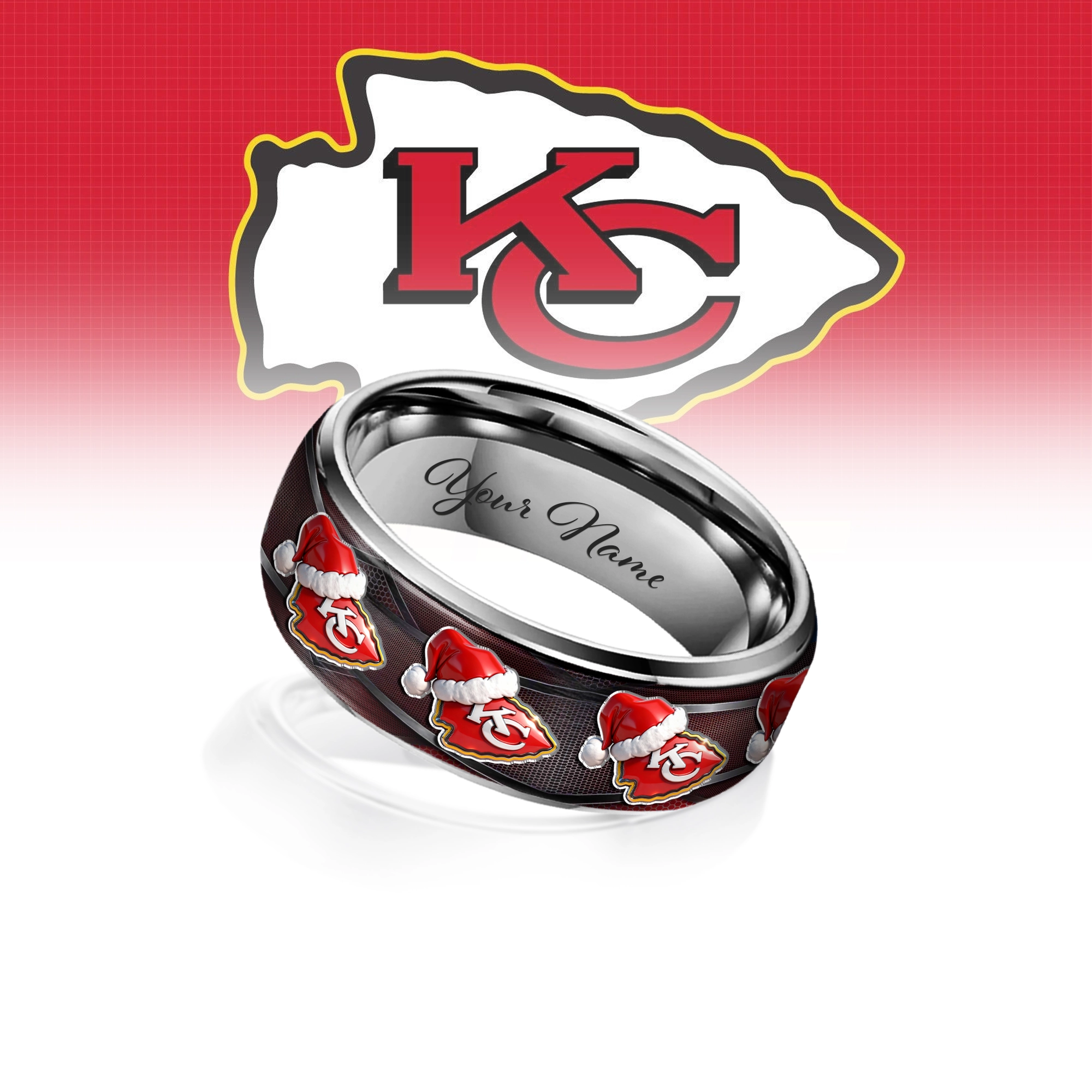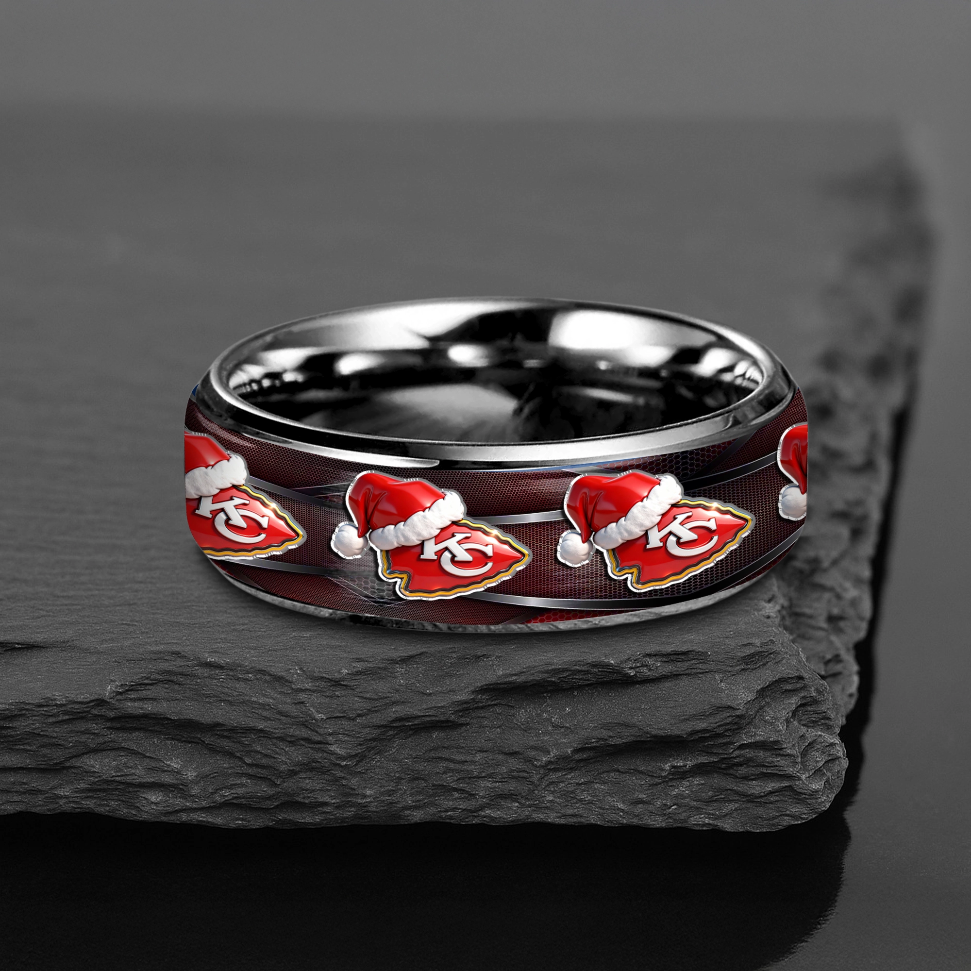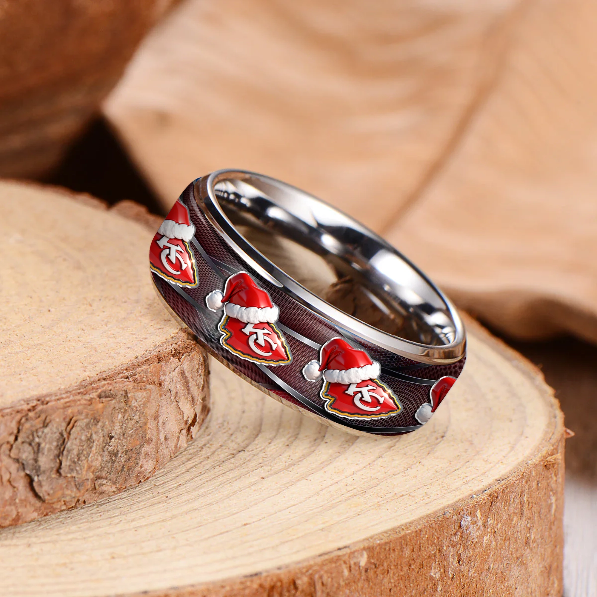 Gleammerch Kansas City Chiefs x Christmas Silver Tungsten Rings Gift For Fans