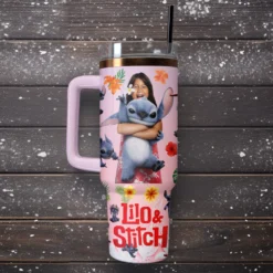 Gleammerch Lilo & Stitch Custom Stanley Quencher 40oz Stainless Steel Tumbler With Handle