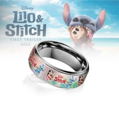 Gleammerch Lilo & Stitch Silver Tungsten Rings Gift For Fans