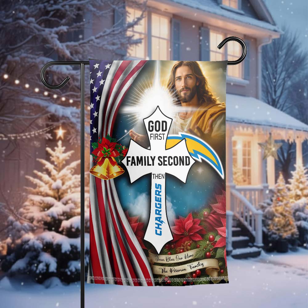 Gleammerch Los Angeles Chargers Jesus Christ Garden Flag Gift For Fan