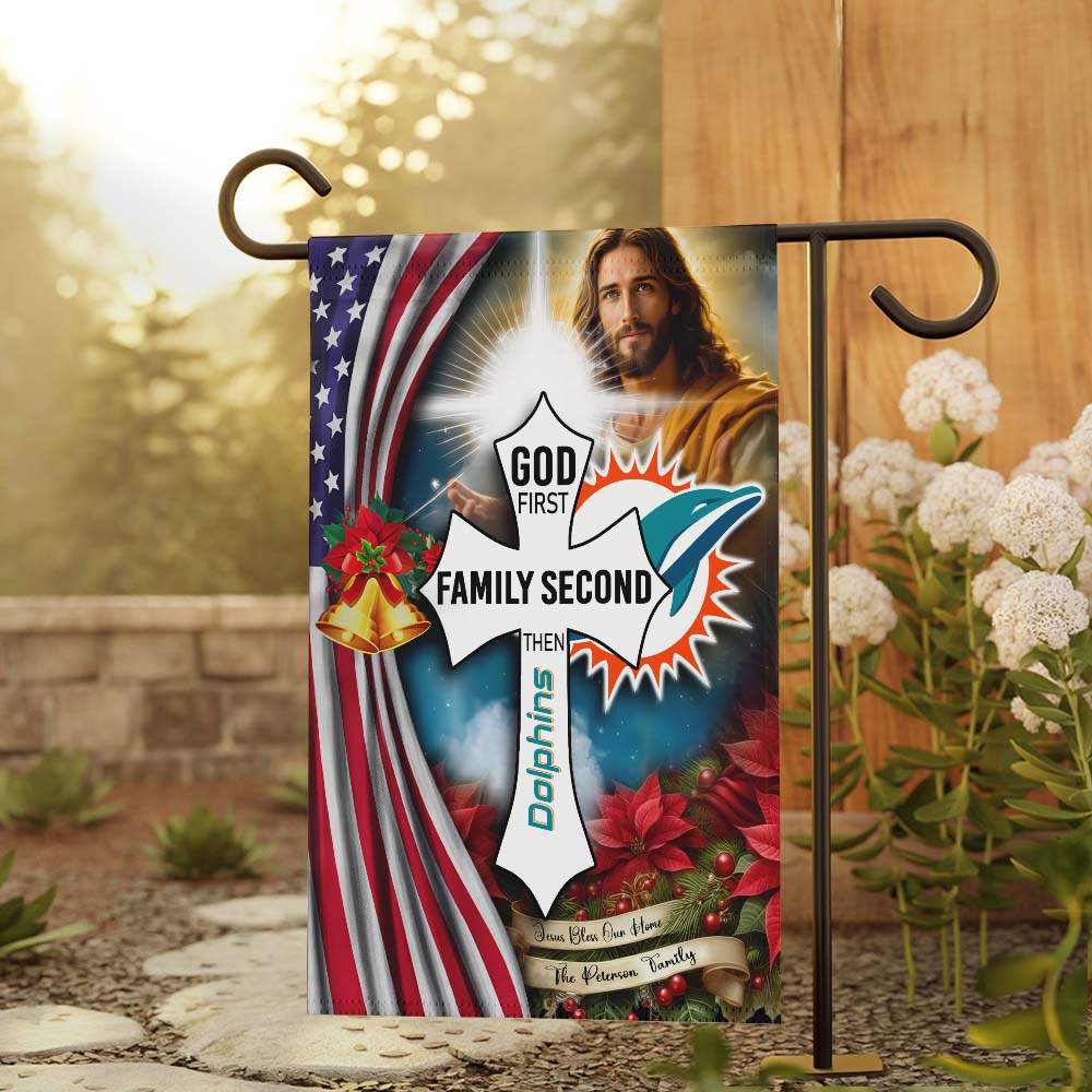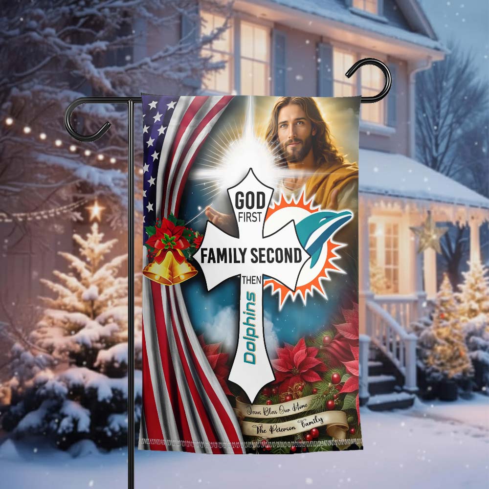 Gleammerch Miami Dolphins Jesus Christ Garden Flag Gift For Fan