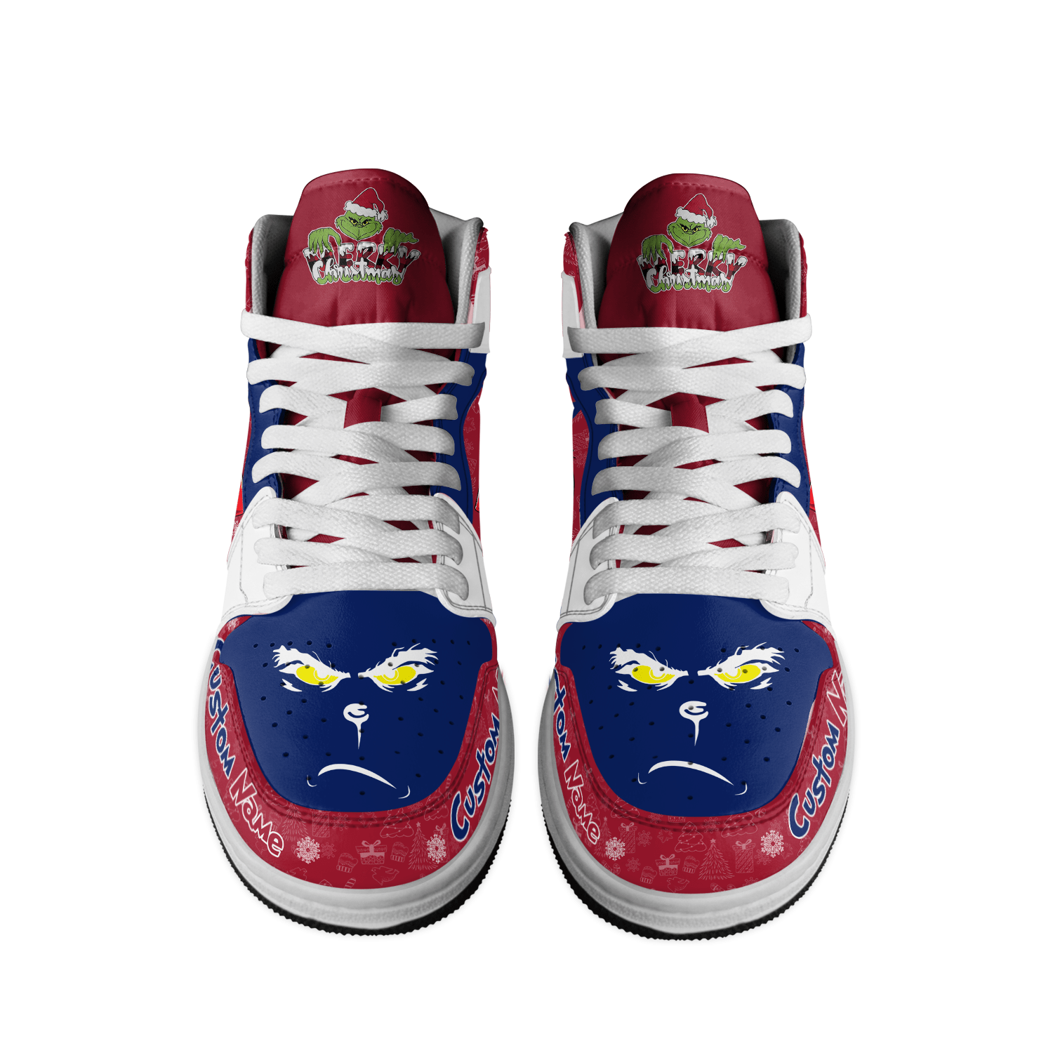 Gleammerch New York Giants x The Grinch x Christmas AJ1 High Sneakers Shoes For Men And Women