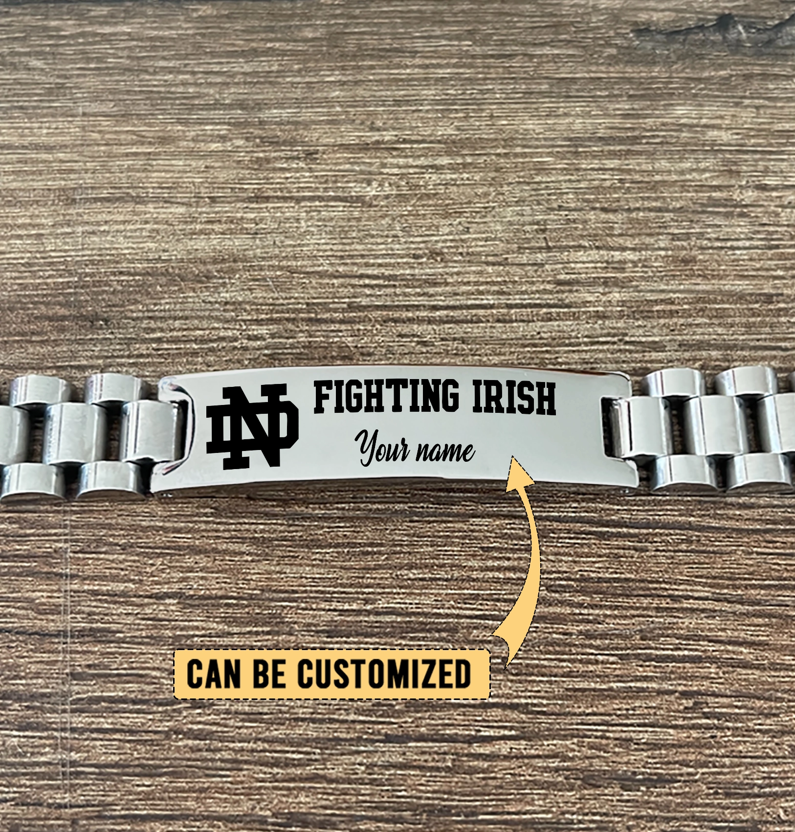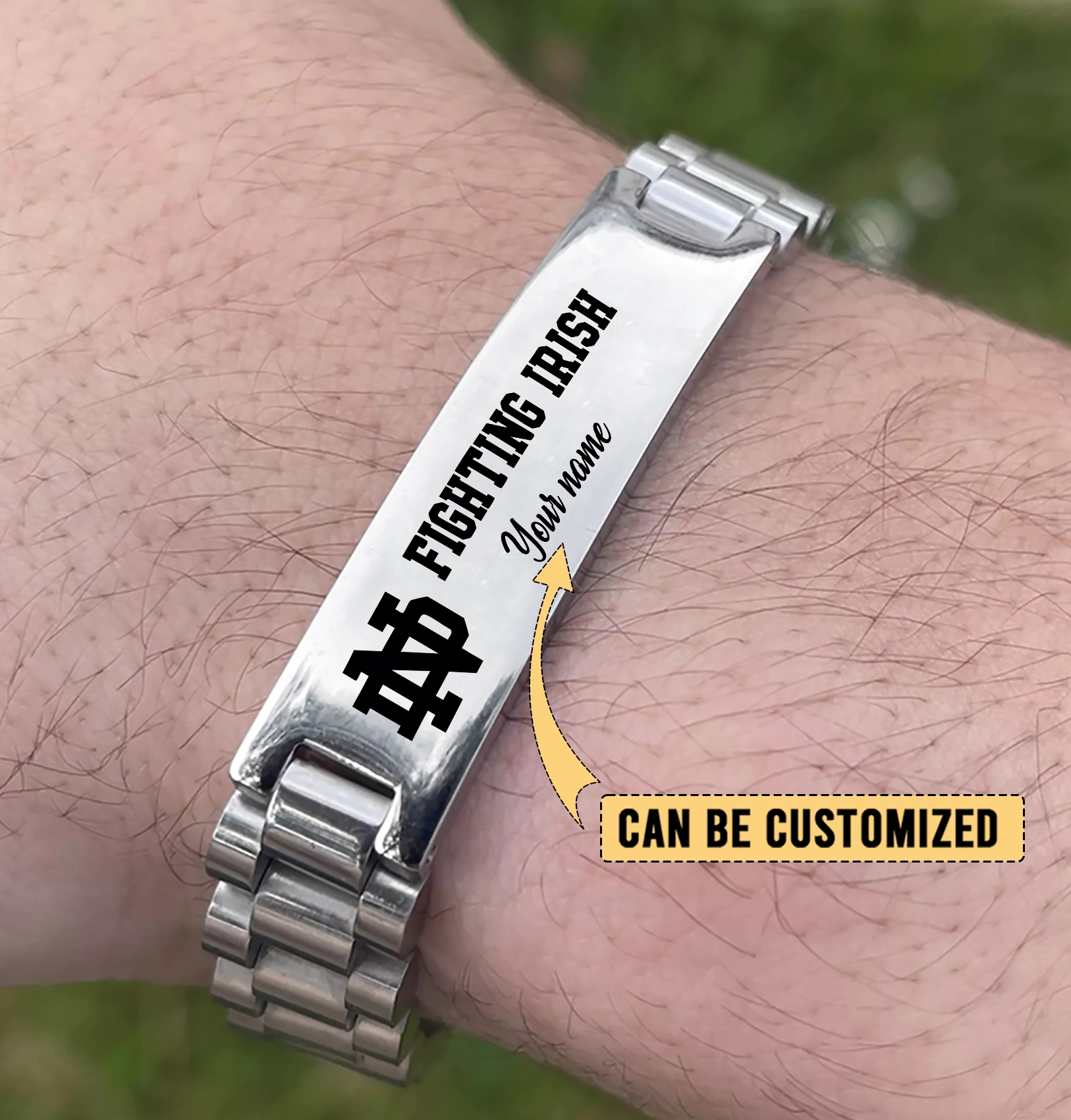 Gleammerch Notre Dame Fighting Irish Personalized Men’s Silver Bracelet Gift For Fans