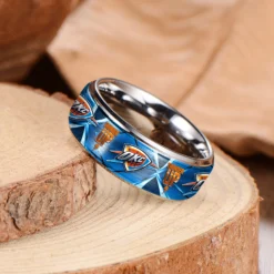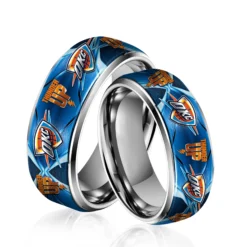 Gleammerch Oklahoma City Thunder Silver Tungsten Rings Gift For Fans