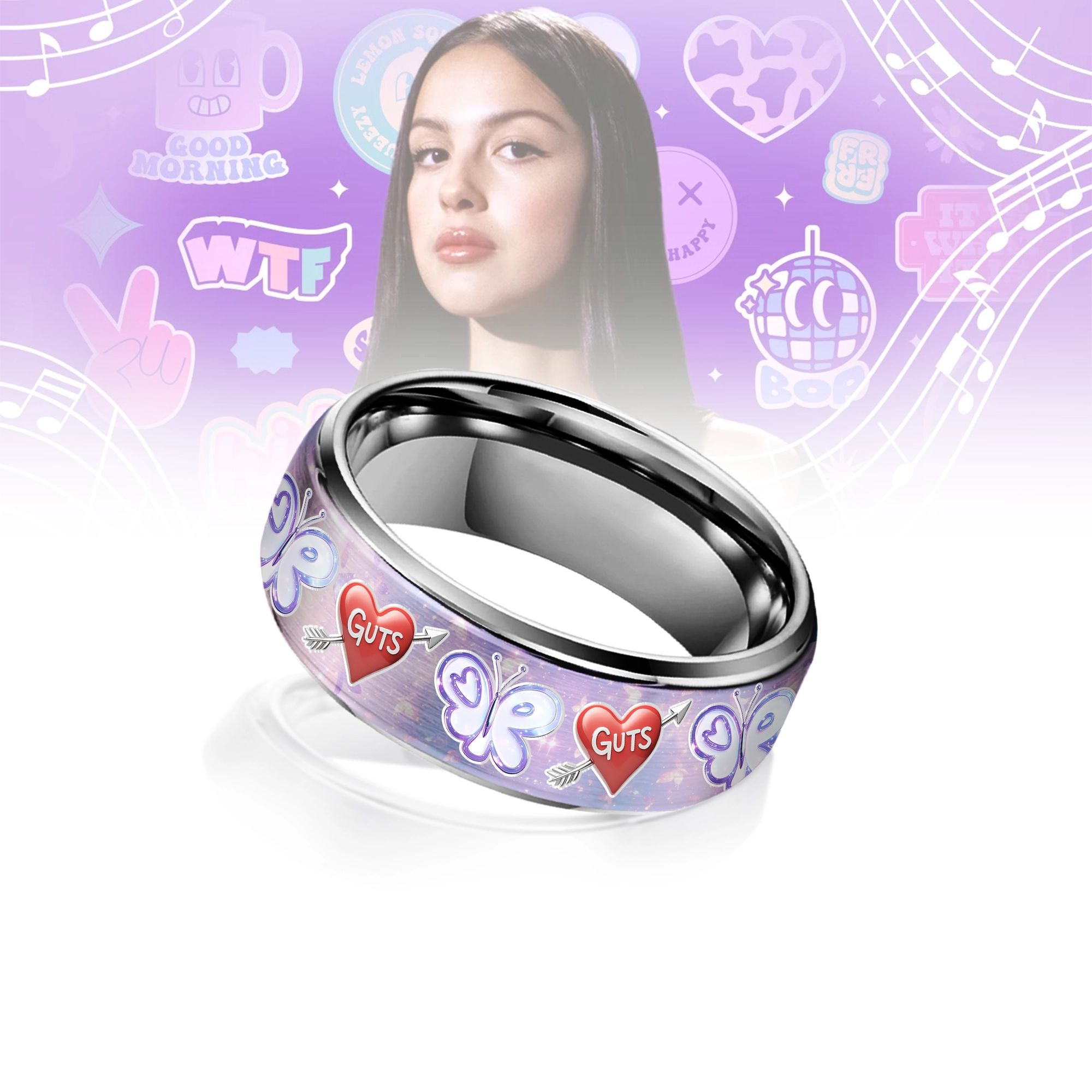 Gleammerch Olivia Rodrigo Silver Tungsten Rings Gift For Fans