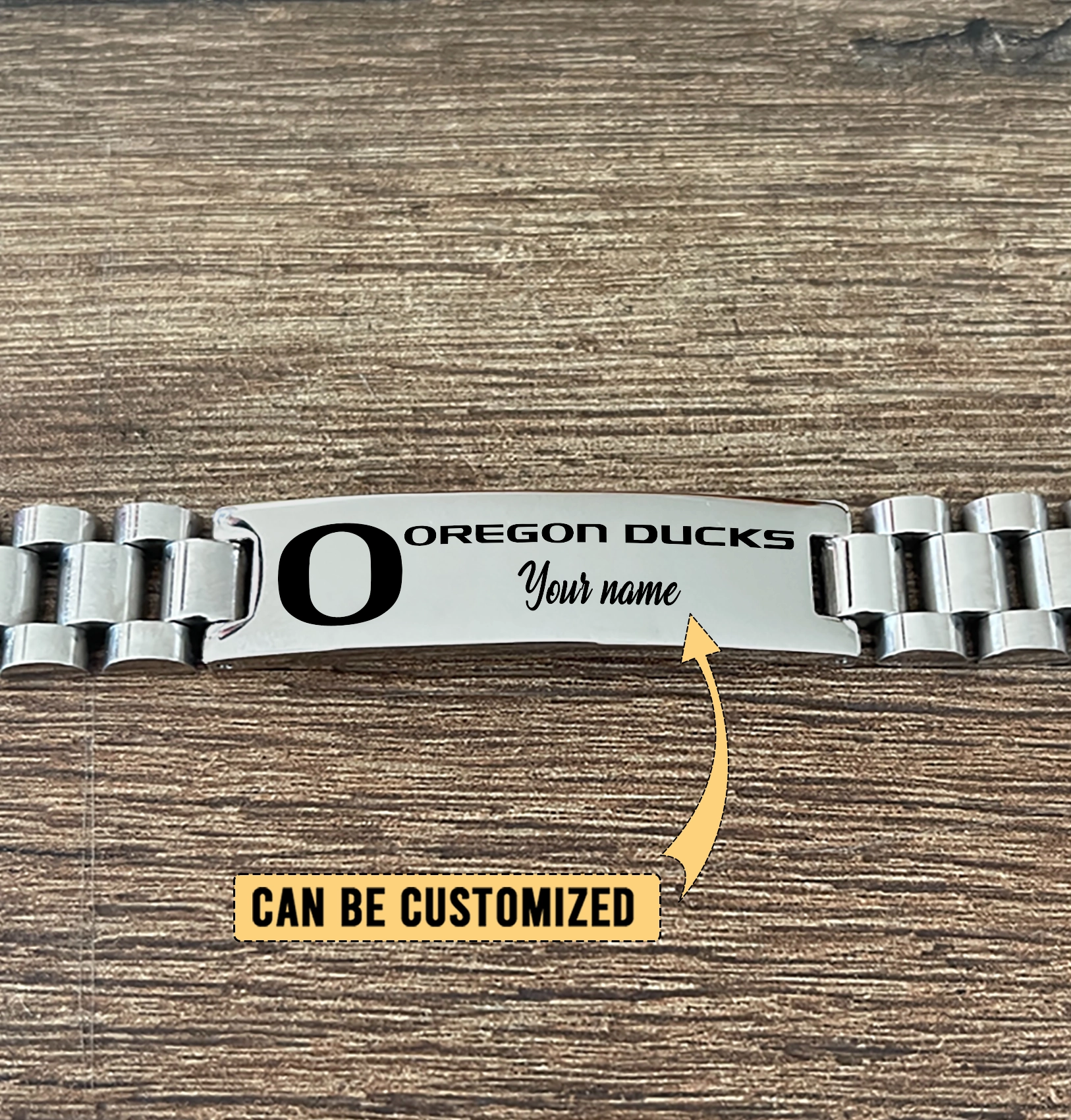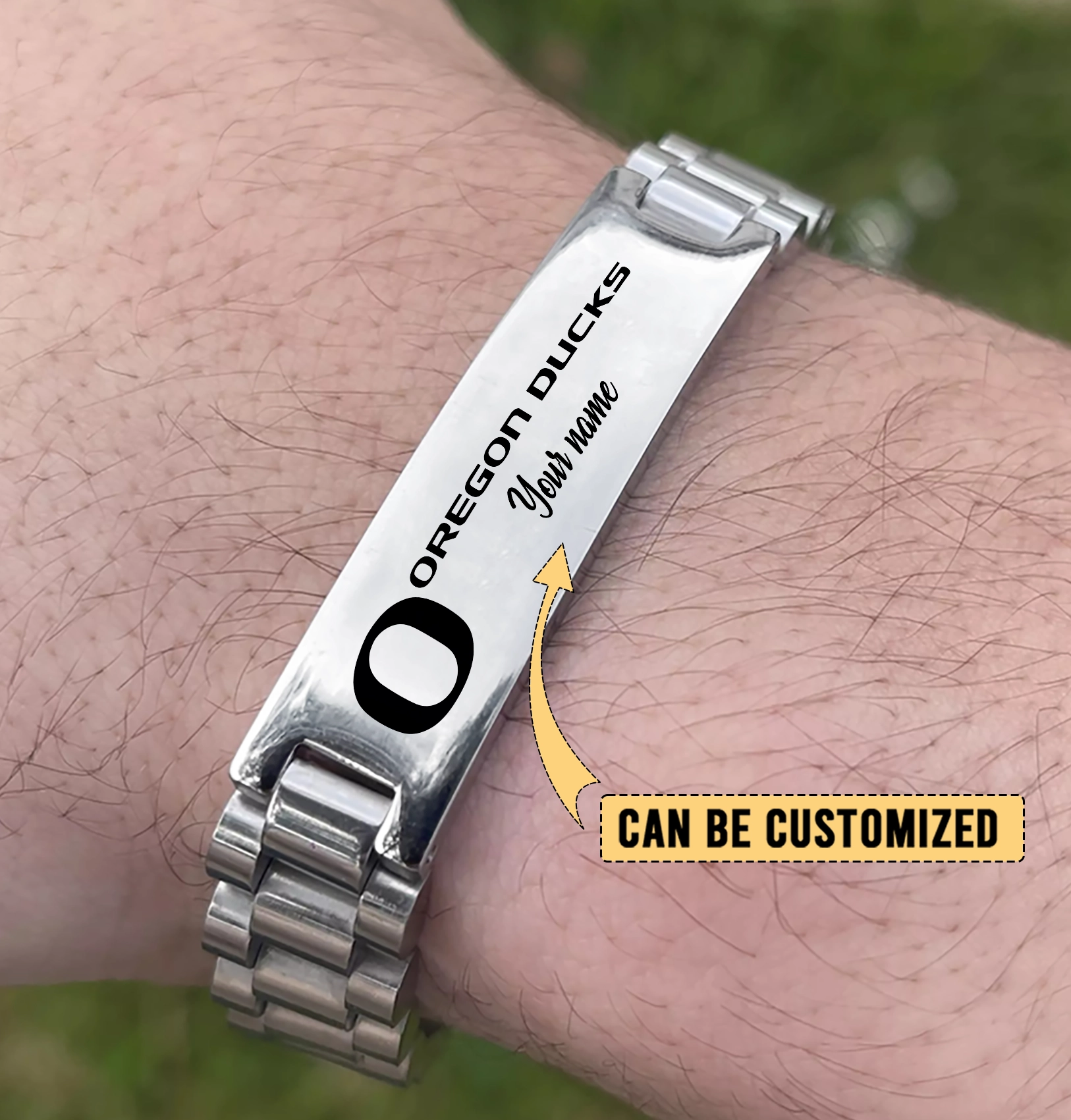 Gleammerch Oregon Ducks Personalized Men’s Silver Bracelet Gift For Fans