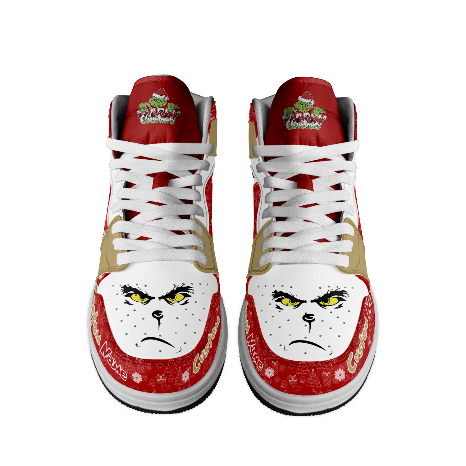 Gleammerch San Francisco 49ers x The Grinch x Christmas AJ1 High Sneakers Shoes For Men And Women