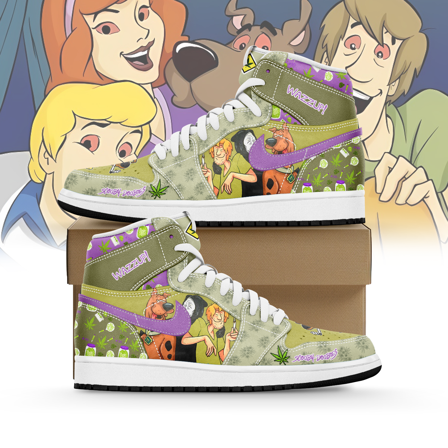 Gleammerch Scooby doo AJ1 High Sneakers Shoes For Men And Women