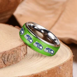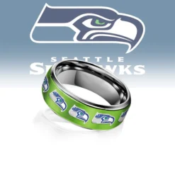 Gleammerch Seattle Seahawks Silver Tungsten Rings Gift For Fans