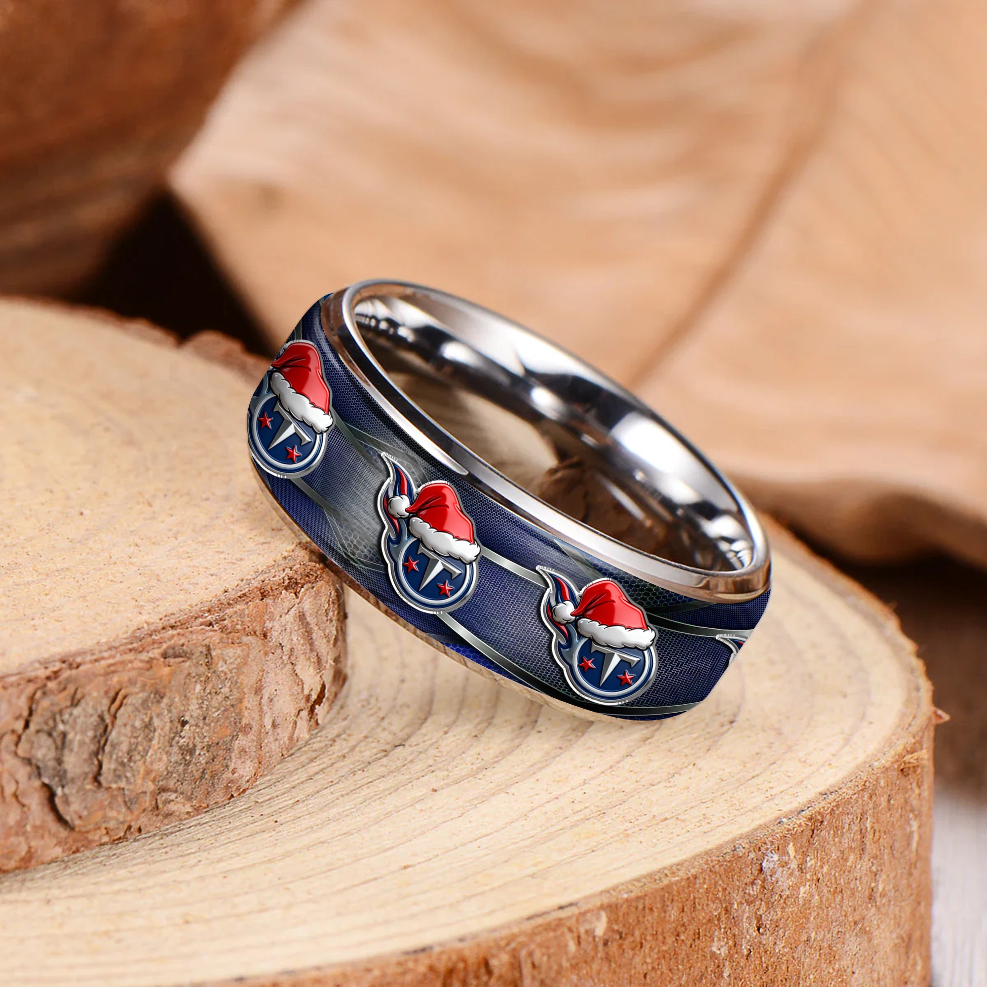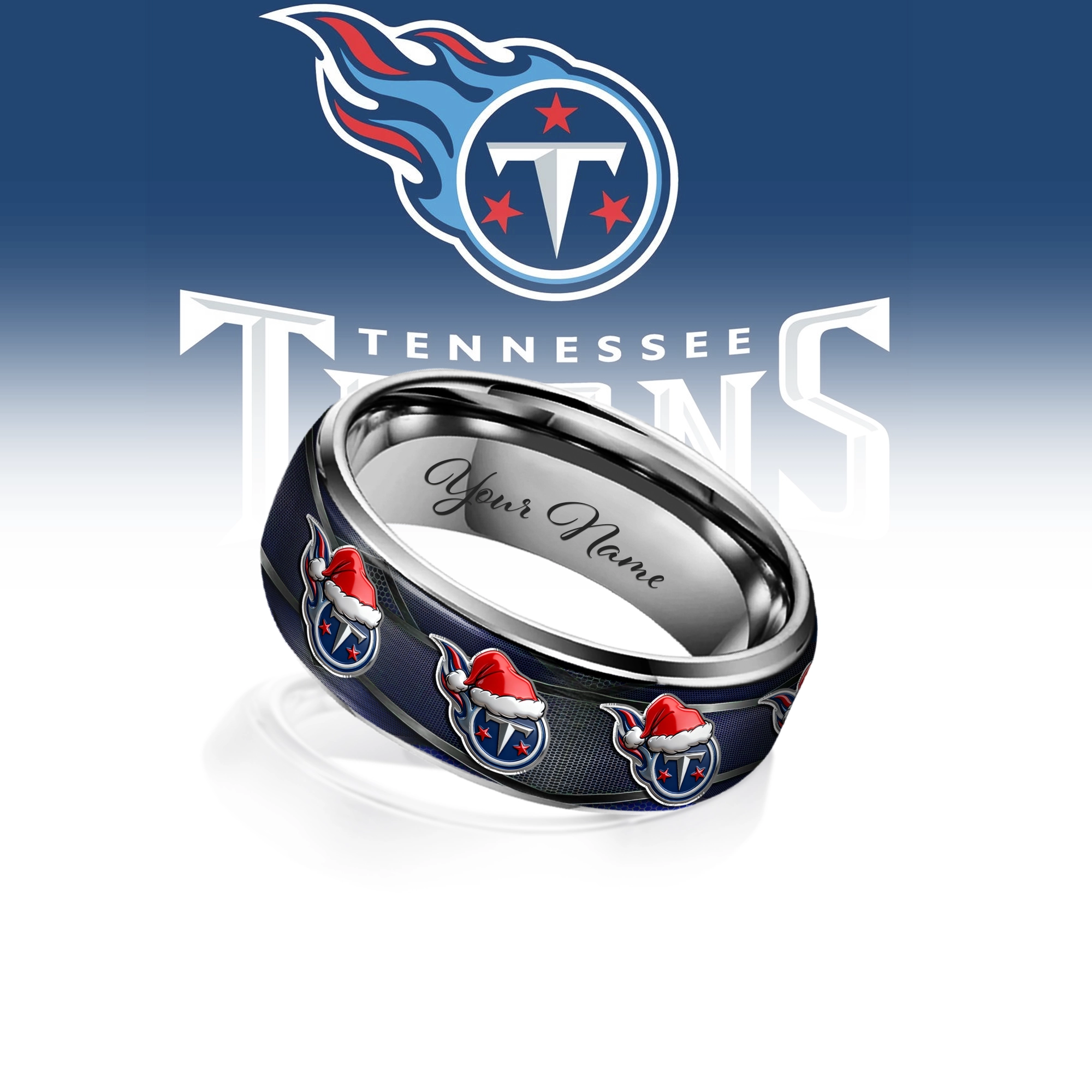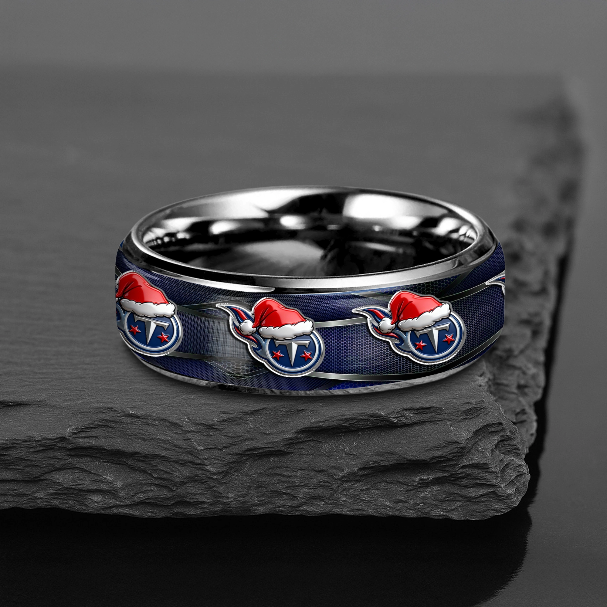 Gleammerch Tennessee Titans x Christmas Silver Tungsten Rings Gift For Fans