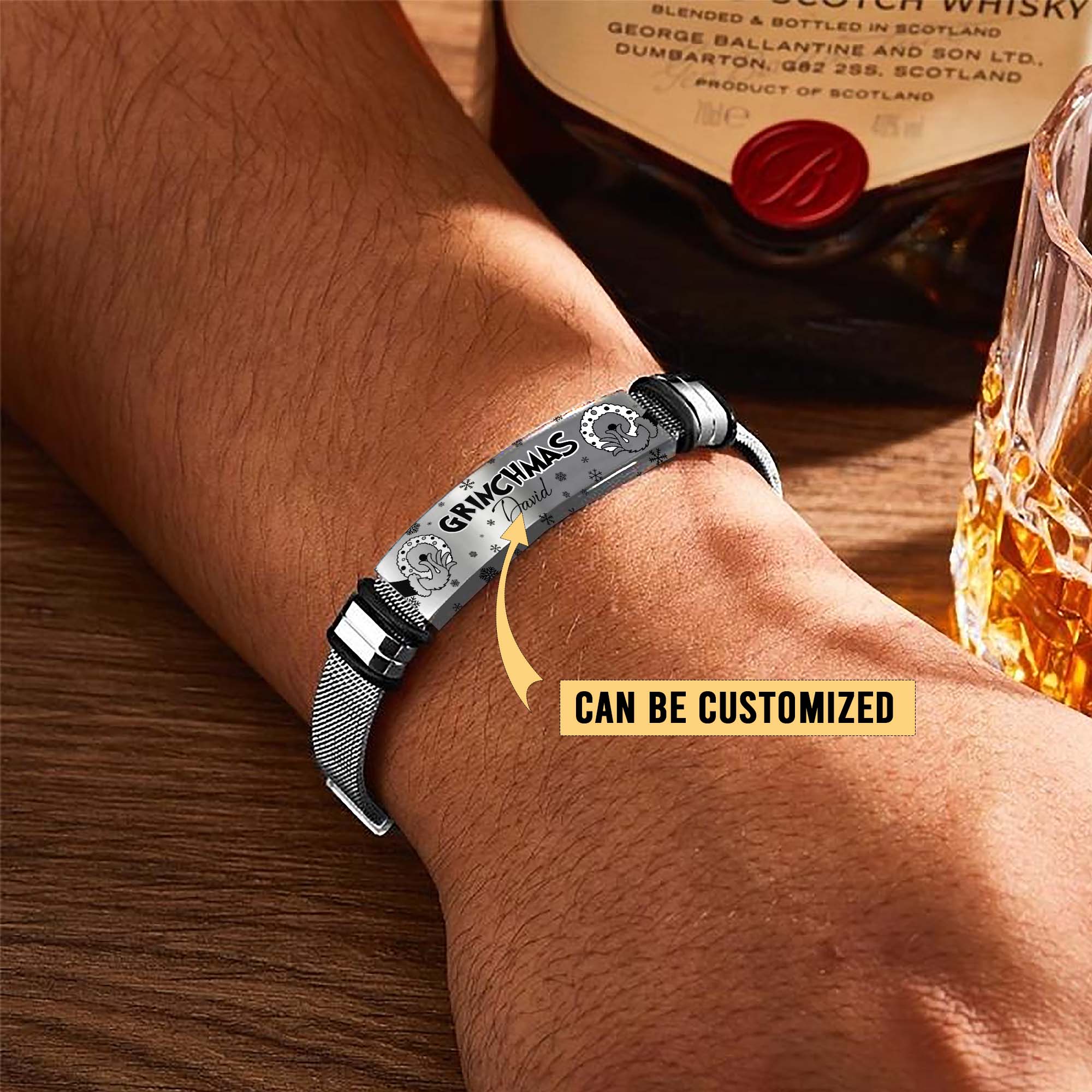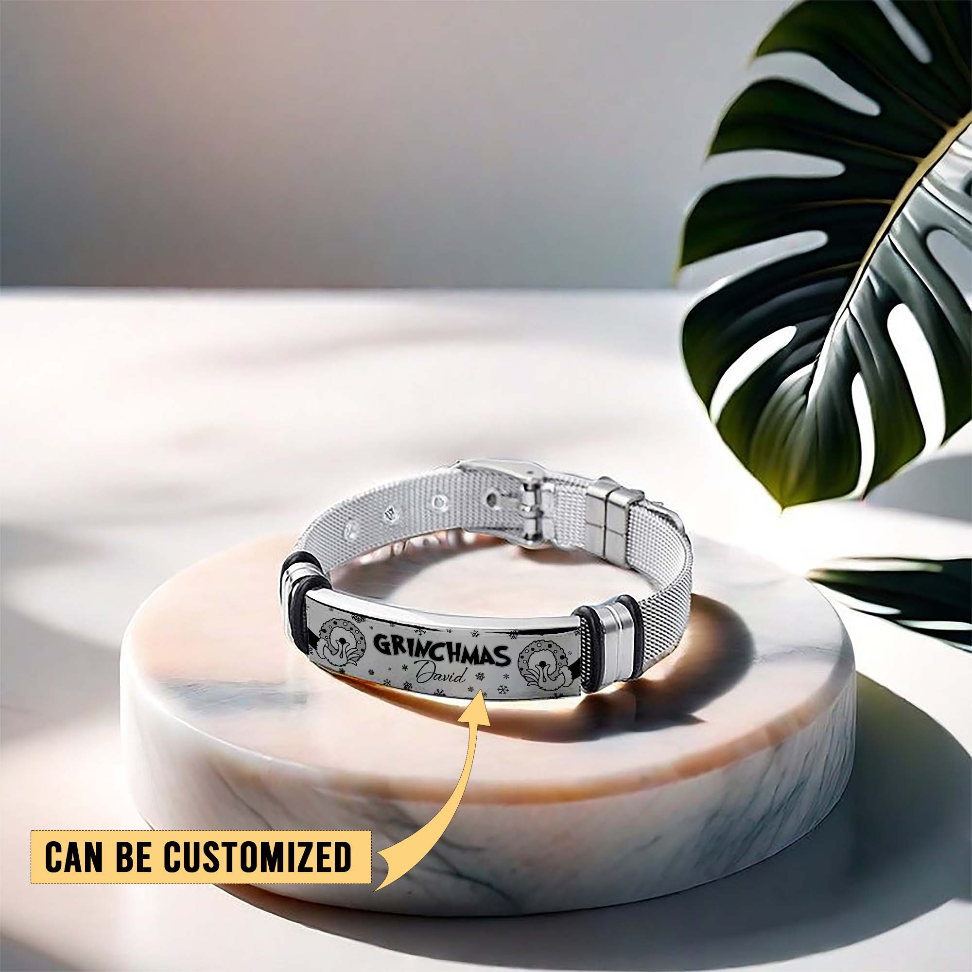 Gleammerch The Grinch Personalized Men’s Metal Bracelet Gift For Fans