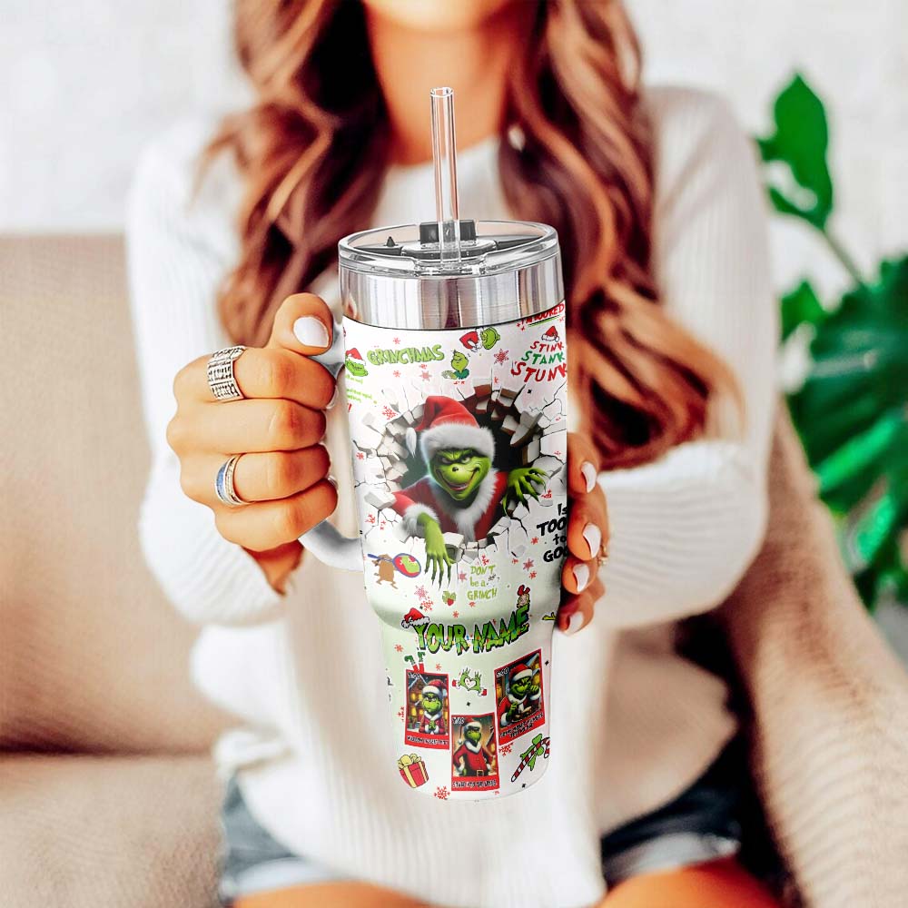 Gleammerch The Grinch x Christmas Stanley Quencher 40oz Stainless Steel Tumbler With Handle