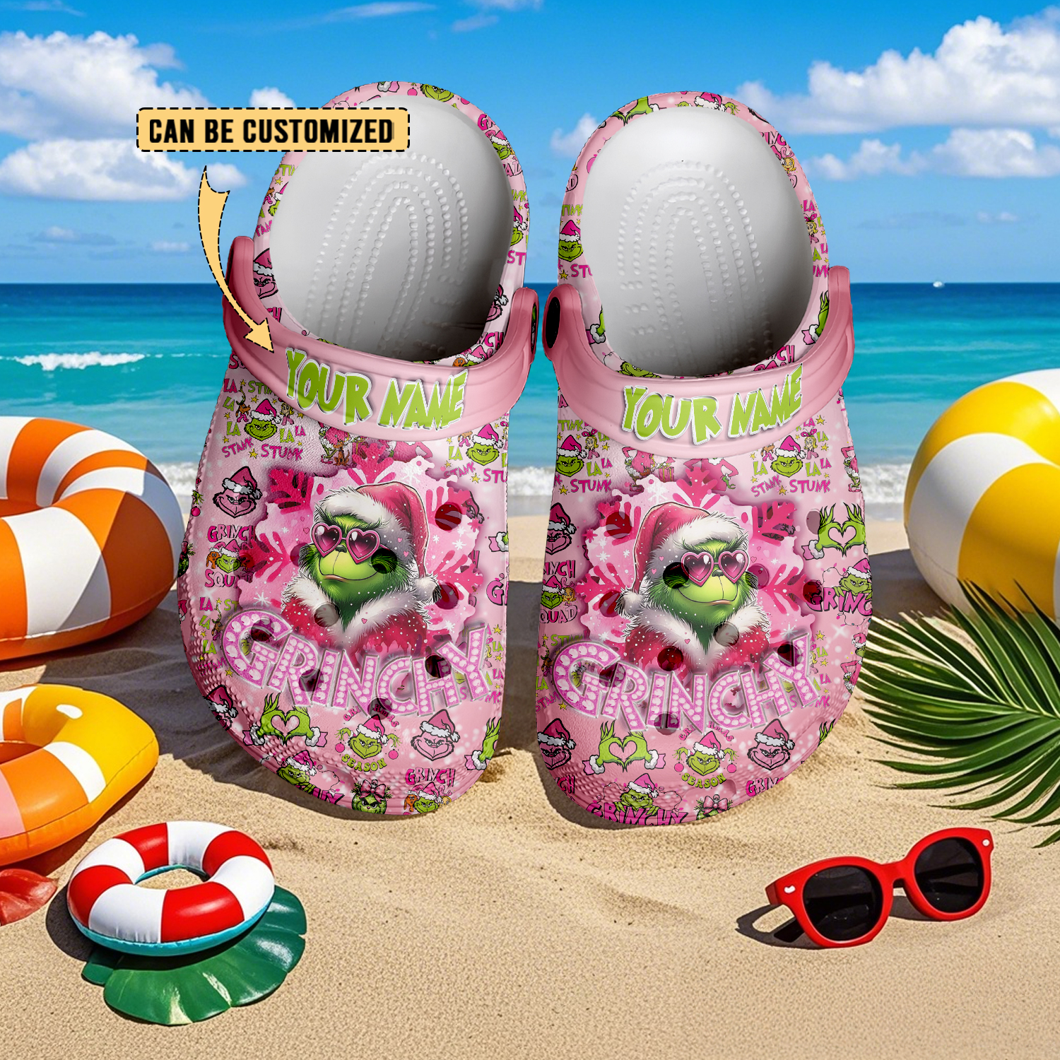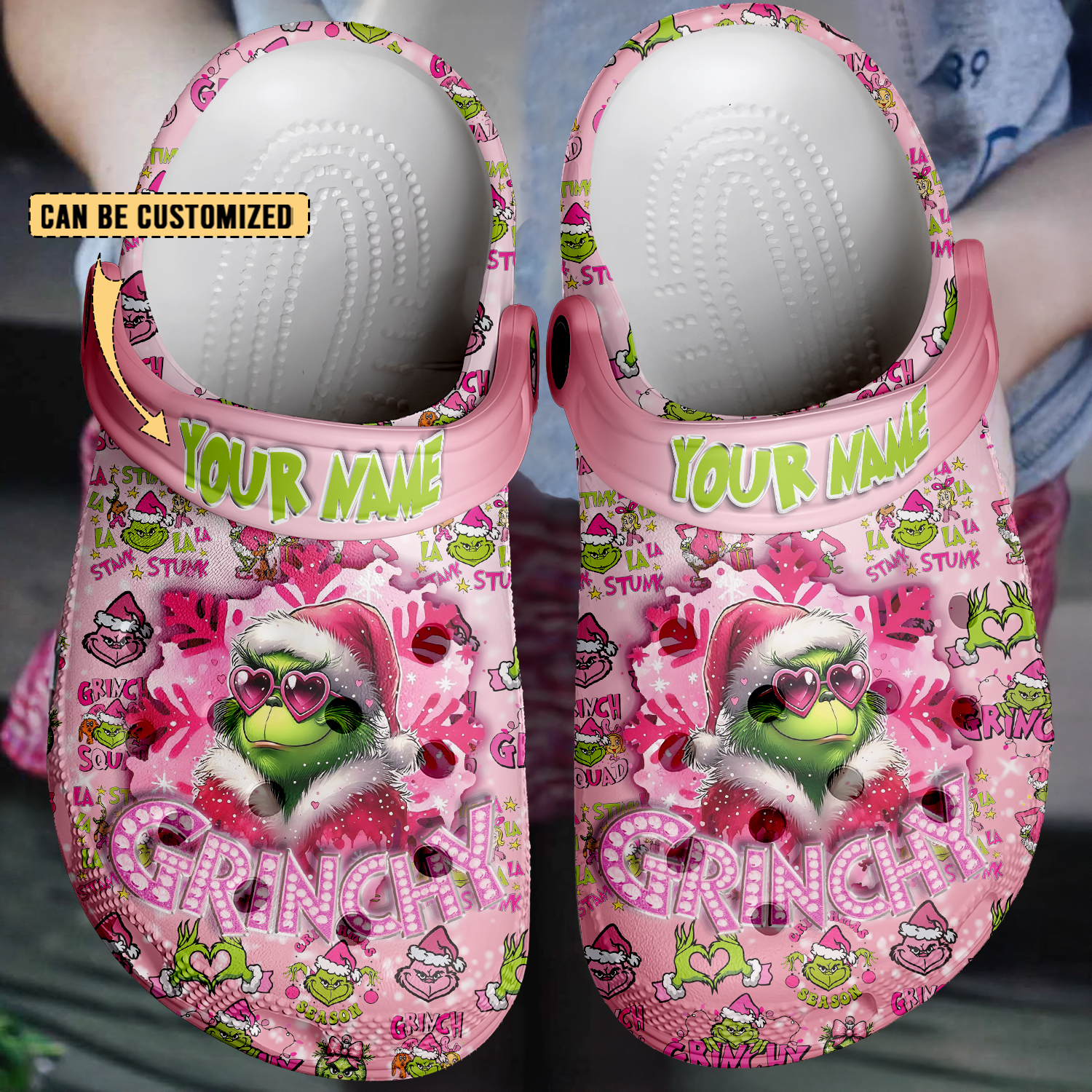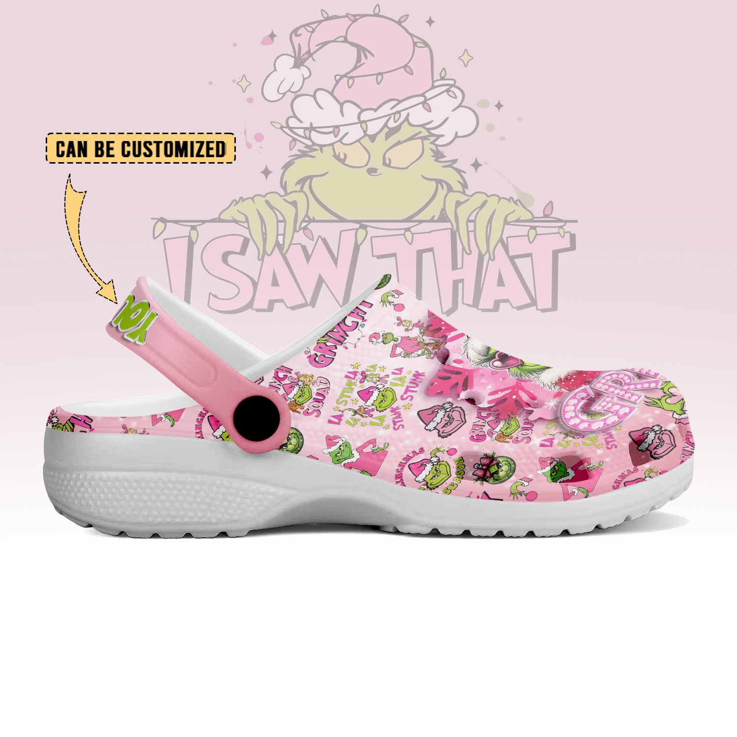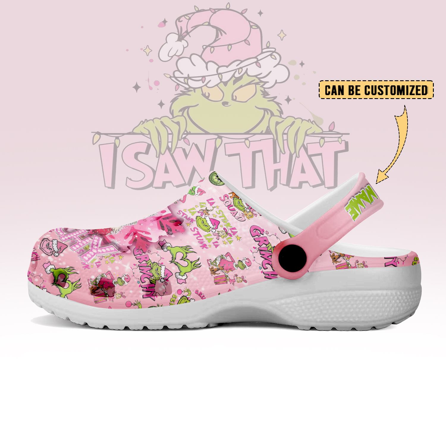 Gleammerch The Grinch x Christmas x Pink October Crocs Crocband Clogs Shoes Comfortable For Men Women and Kids