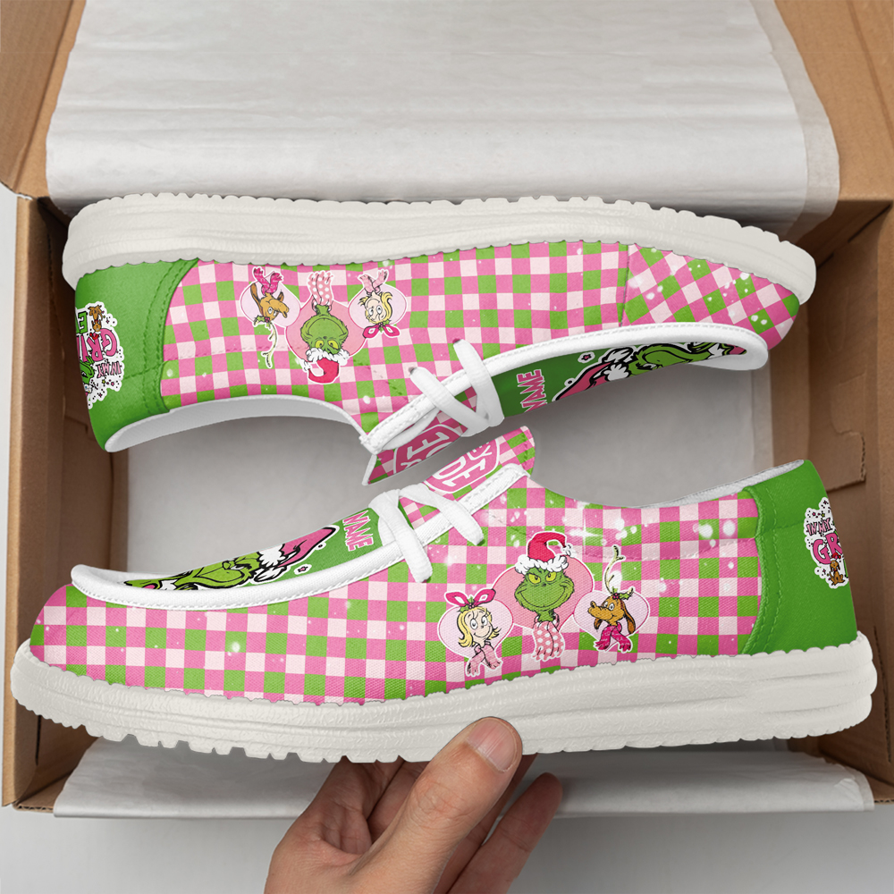 Gleammerch The Grinch x Christmas x Pink October Personalized Hey Dude Shoes For Men And Women