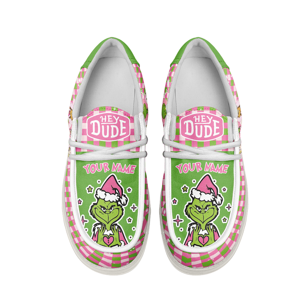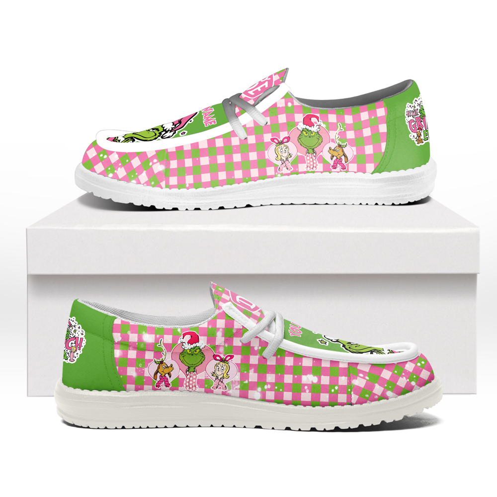 Gleammerch The Grinch x Christmas x Pink October Personalized Hey Dude Shoes For Men And Women $59.95