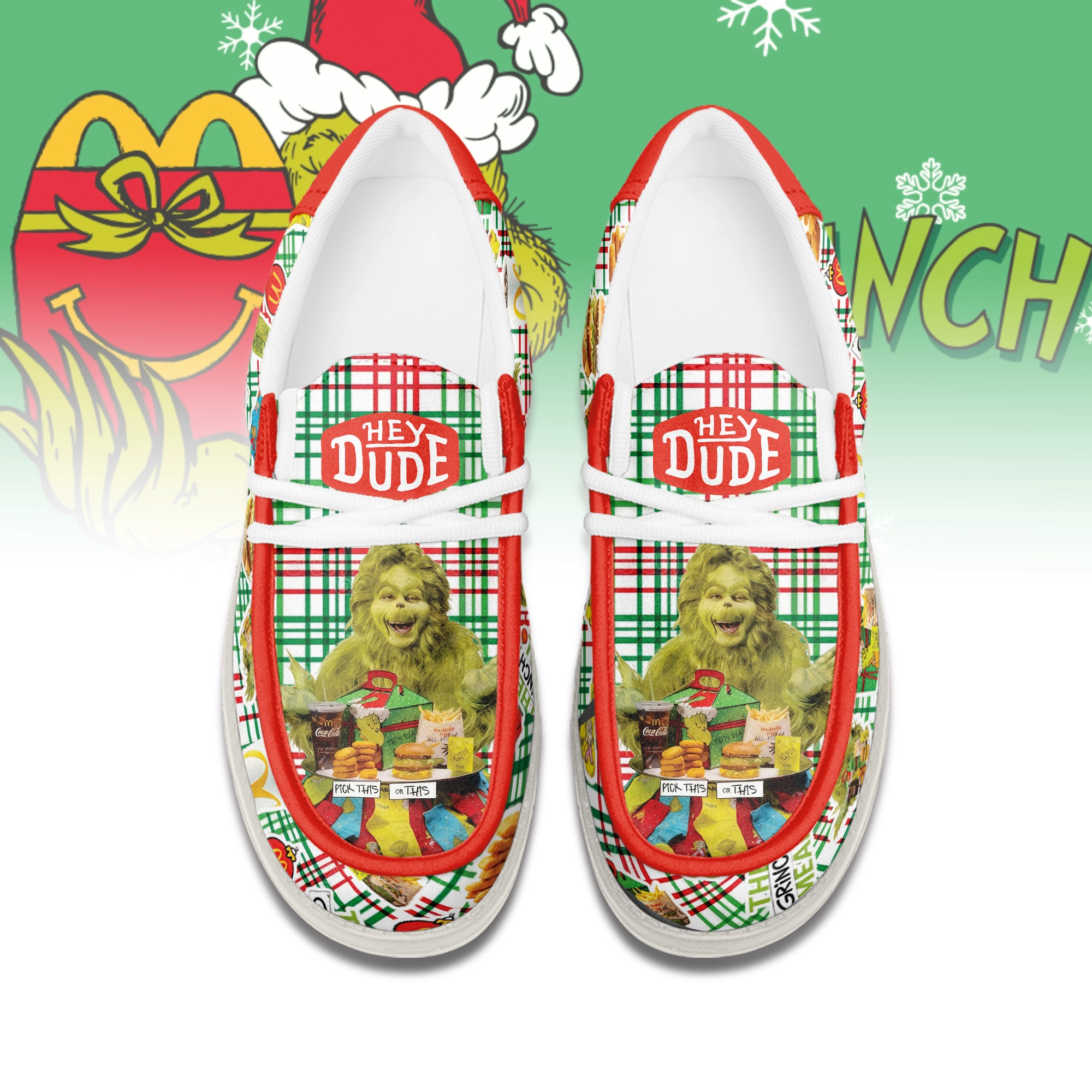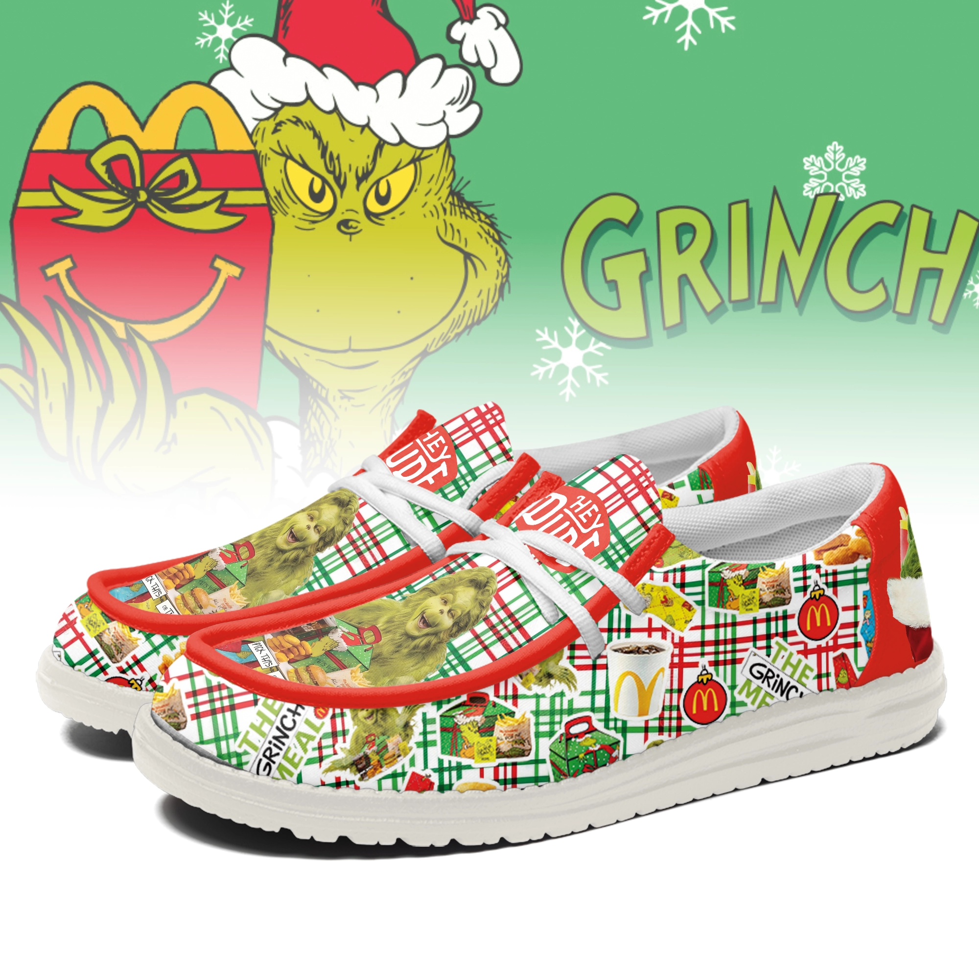 Gleammerch The Grinch x Mcdonald’s Hey Dude Shoes For Men And Women