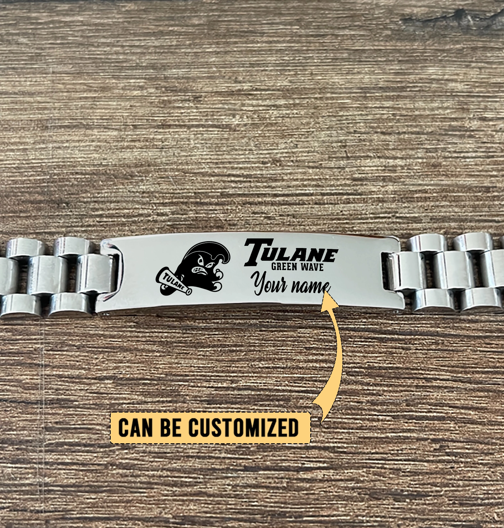 Gleammerch Tulane Green Wave Personalized Men’s Silver Bracelet Gift For Fans