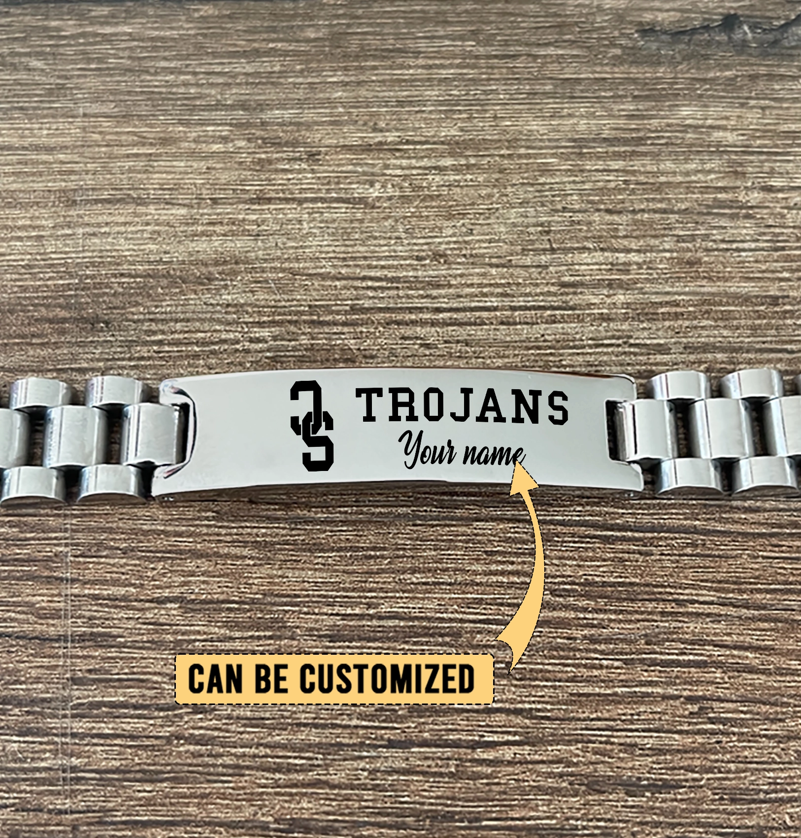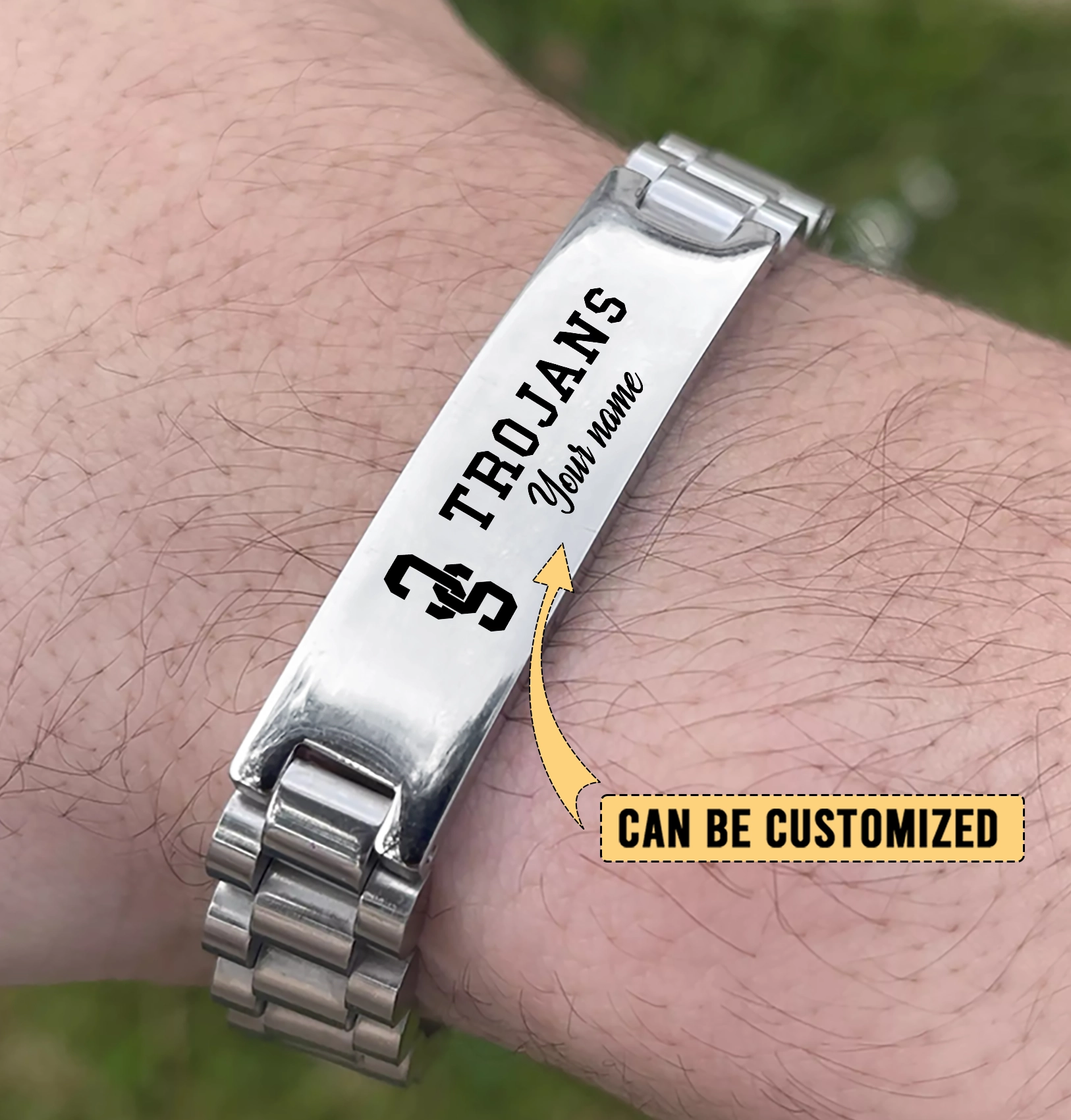 Gleammerch USC Trojans Personalized Men’s Silver Bracelet Gift For Fans