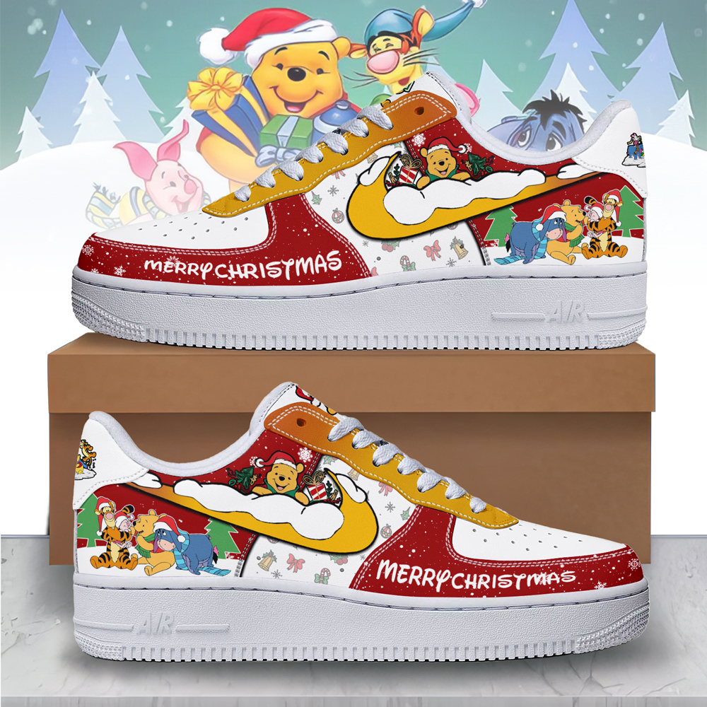 Gleammerch Winnie the Pooh x Christmas Air Low-Top Sneakers Shoes For Men And Women $94.95