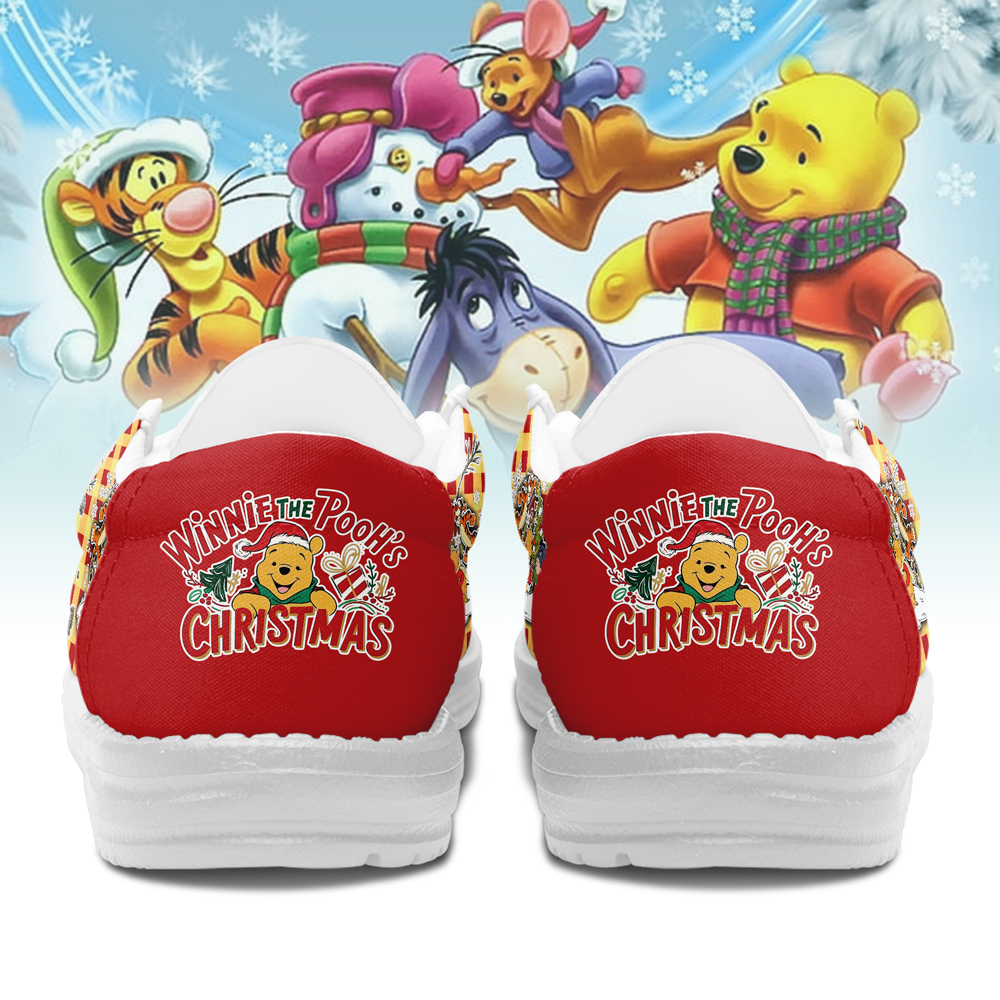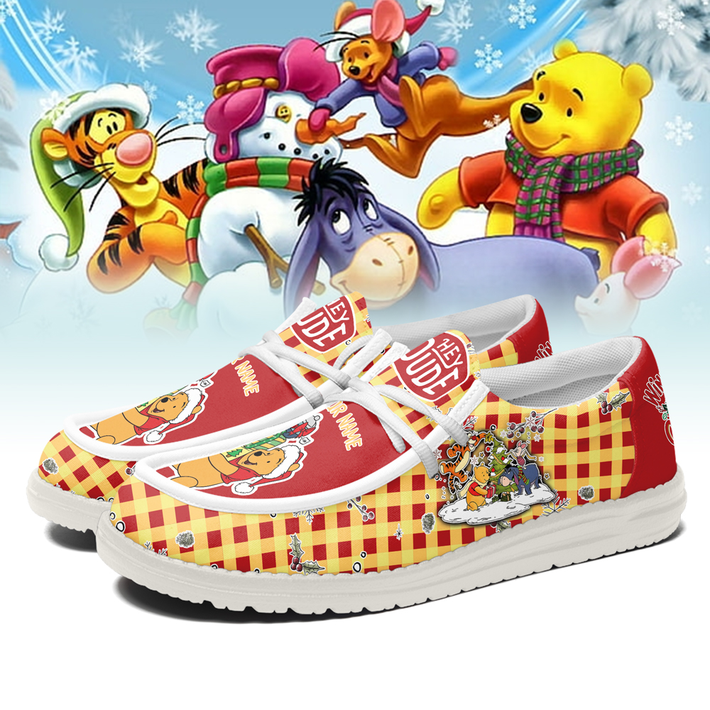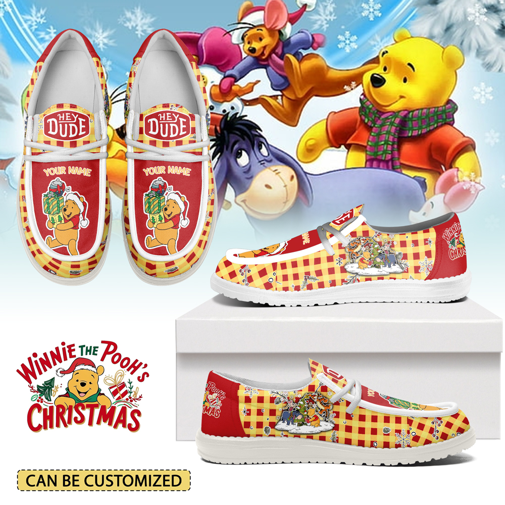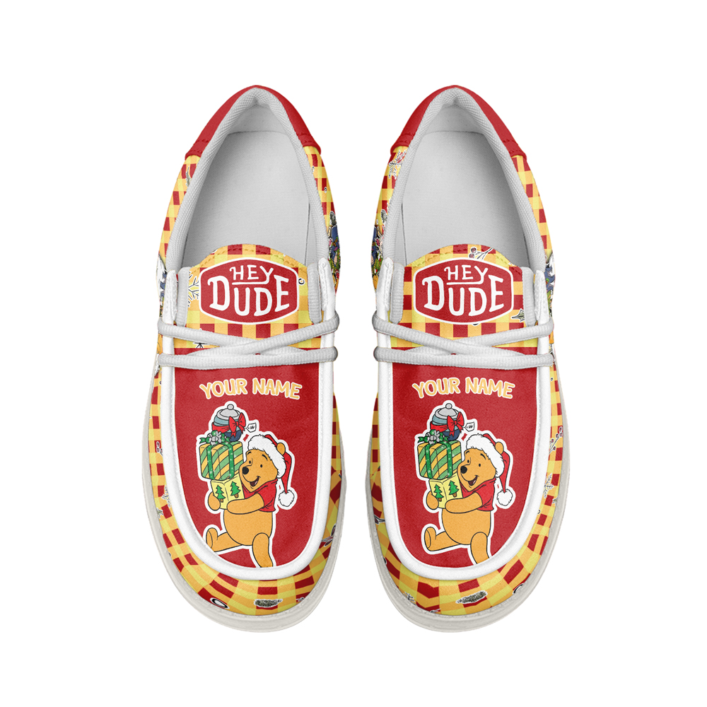 Gleammerch Winnie the Pooh x Christmas Personalized Hey Dude Shoes For Men And Women
